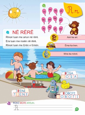 RA RI RE RË ME MI MA MË NA NI NE NË NË RËRË Rinori luan me ariun në rërë. Ami ka ari. Era luan me rosën në rërë. Rinori luan me Erën e Emën. Ema ka tren. Mira ka robot. ROSA OS A TREN T E N ROBOT OBO T RONI MORI ARIUN. 31 31
