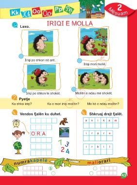 Ku shkoi iriqi? Ku e mori iriqi mollën? Me kë e ndau mollën?qi moll au mol