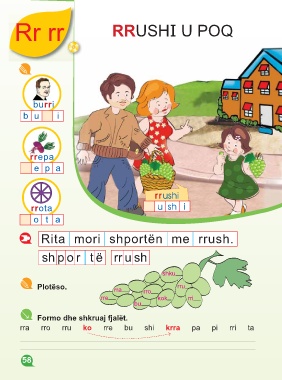 Rr rr RRUSHI U POQ burri bu i rrepa epa rrushi rrota ush i ota Rita mori shportën me rrush. shpor të rrush shku Plotëso. rra rro rru rre kok rri bu Formo dhe shkruaj fjalët. rra rro rru ko rre bu shi krra pa pi rri ta 58 58