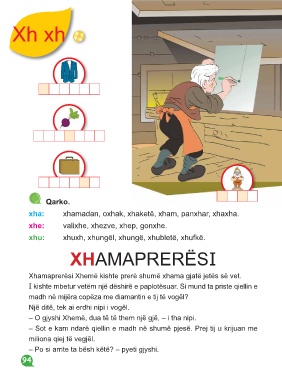 xha: xhamadan, oxhak, xhaketë, xham, panxhar, xhaxha.