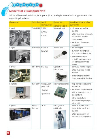 Në tabelën e mëposhtme janë paraqitur pesë gjeneratat e kompjuterave dhe