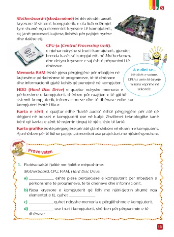 a) _____________________________ është pjesa përgjegjëse e kompjuterit për mbajtjen e