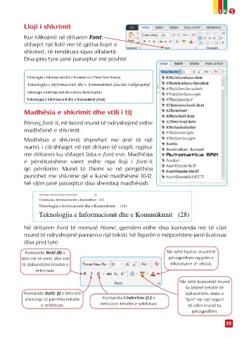 Në dritaren Font të menysë Home, gjenden edhe disa komanda me të cilat