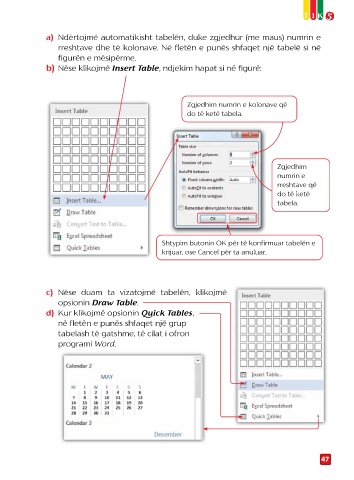 b) Nëse klikojmë Insert Table, ndjekim hapat si në figurë:
