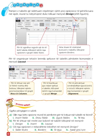c) Cili nga opsionet e mëposhtme ndodhet në menynë Design?