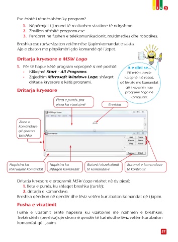 1. fleta e punës, ku shfaqet breshka (turtle);