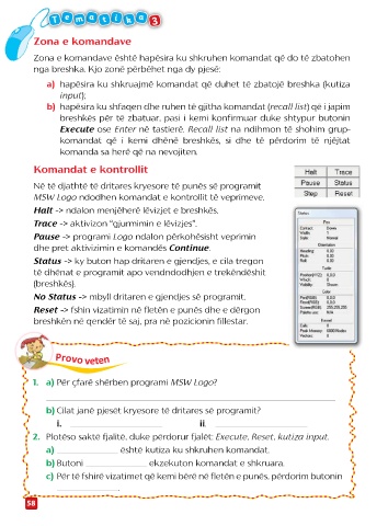 2. Plotëso saktë fjalitë, duke përdorur fjalët: Execute, Reset, kutiza input.