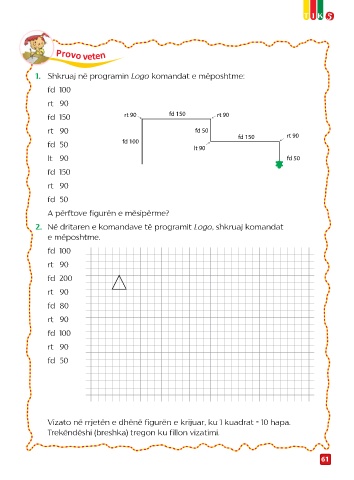 1. Shkruaj në programin Logo komandat e mëposhtme: