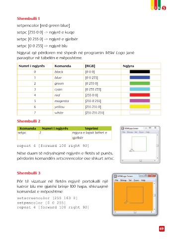 Ngjyrat që përdoren më shpesh në programin MSW Logo janë