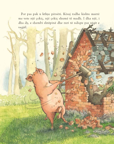 Por pas pak u kthye përsëri. Kësaj radhe kishte marrë me vete një çekiç, një çekiç shumë të madh. I dha një, i dha dy, e shembi shtëpinë dhe zuri të ndiqte pas ujqit e vegjël.